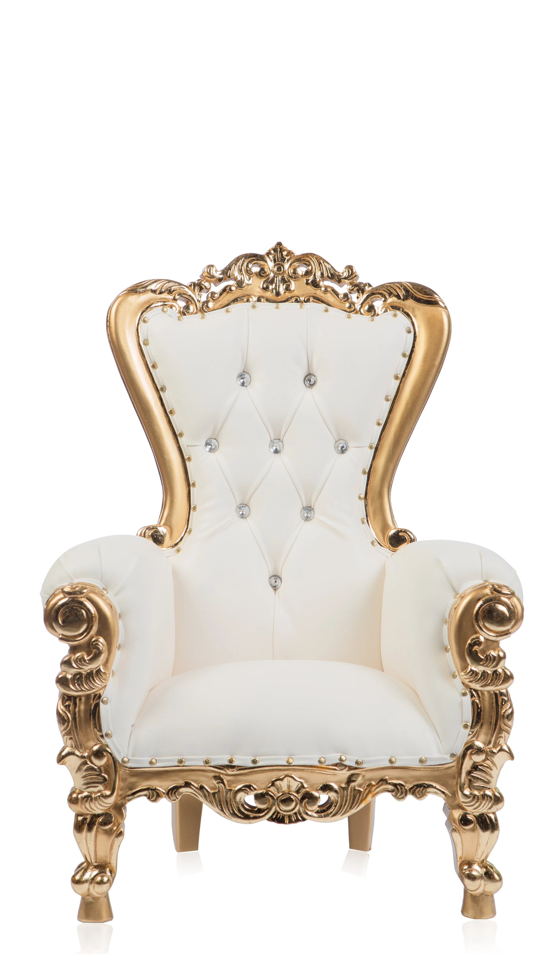 Available in Austin, TX. AREA! Make your little one feel like royalty with the Kids Gold and White Chair! Perfectly sized for children, this charming chair combines elegance and fun, making it an ideal addition to birthday parties, themed events, or photo shoots. Give your event a regal touch that’s just their size!